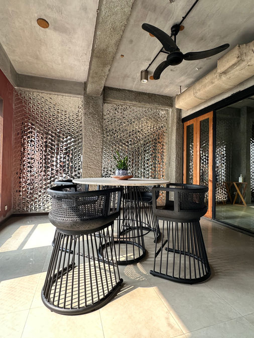 Crafted in solid Kikar and finished by charring the wood, revealing subtle grain and tool marks that soften its monolithic presence. The rhythm of the base introduces depth and shadow, grounding the table while giving it a sculptural, almost architectural stance.